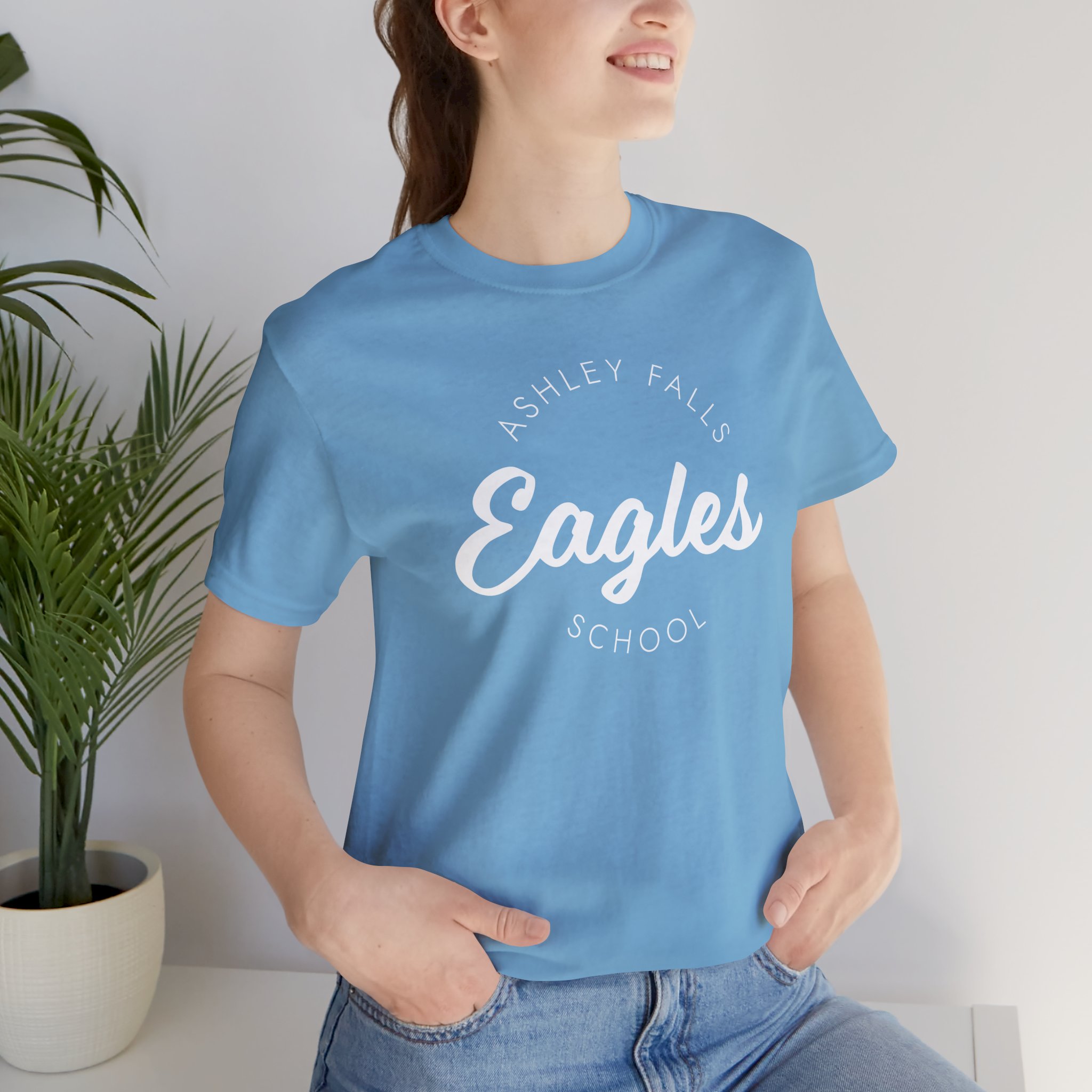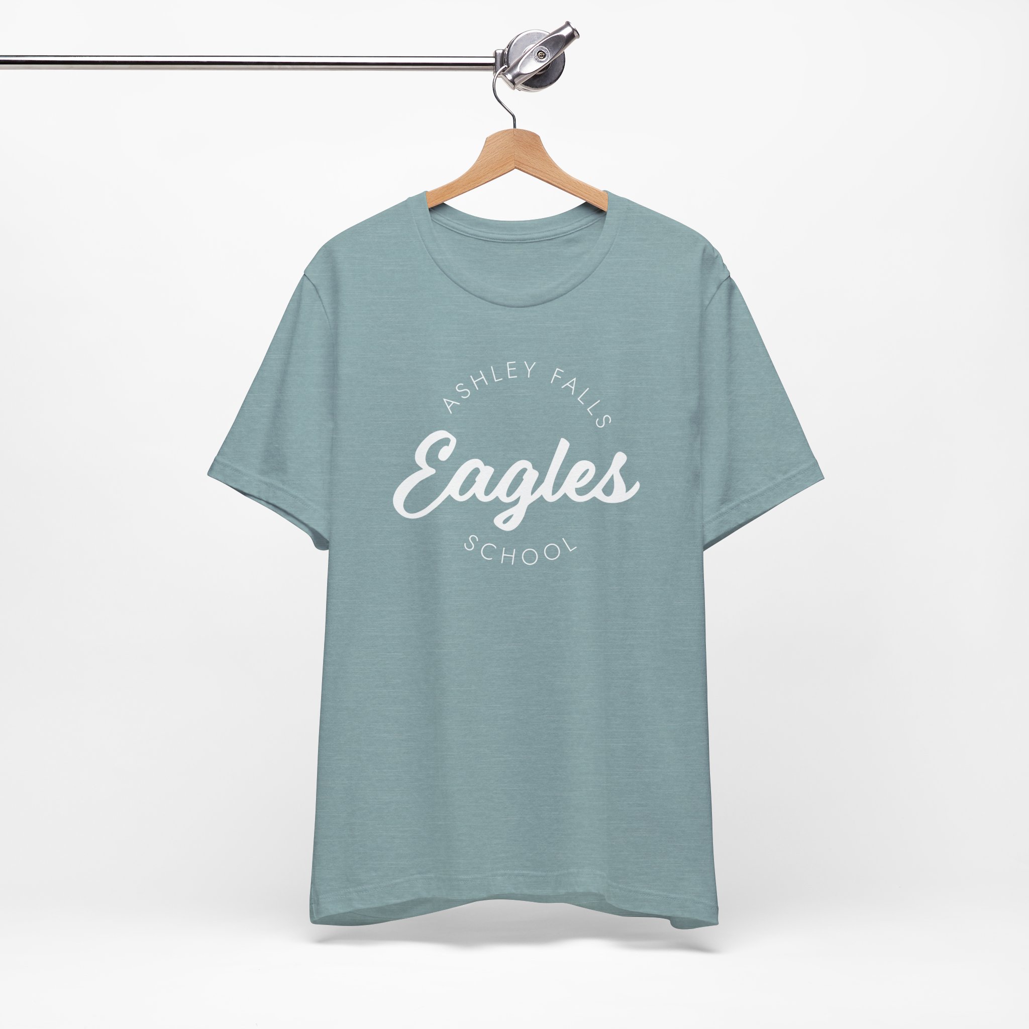 Show off your school spirit in style with this Ashley Falls Elementary adult tee, featuring a clean script “Eagles” design surrounded by subtle arched lettering. With its modern, minimalist look and comfortable fit, it’s perfect for parents, teachers, and proud supporters alike.